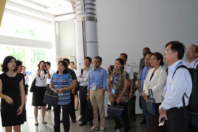 图:多国别考察团参观气象科普大厅 刘洪涛摄