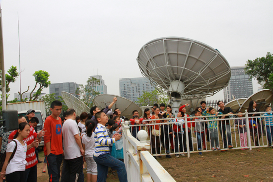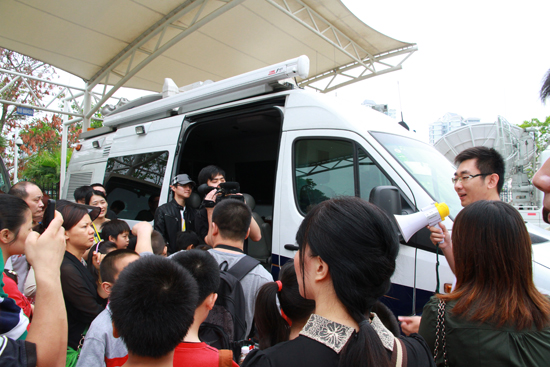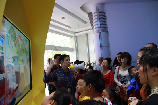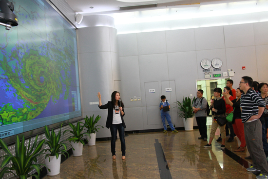 在户外,工作人员给家长和孩子们介绍气象影视车和应急移动监测车的功能,气象影视能借助携带的影视和卫星监测设备进行现场气象直播,应急移动监测车能够进行现场气象探测和服务,它们在气象应急和现场气象保障(如大运和春运保障)中发挥了不可替代的作用。在科普厅里,孩子们对视频动画春夏秋冬很是喜欢,又是抓鱼、又是扫落叶、又是舞雪花,别提有多开心了,观测员高瑞泉也在耐心的给大家讲解全市观测站点的布局、分布,让市民了解气象布下天罗地网为城市安全增添保障。在气象业务大厅,市民被去年“韦森特”台风登陆前雷达图像所显示近乎完美的螺旋云带所吸引;预报员胡娟一面回答着大家关于台风、冰雹和雷电的问题,一面向大家介绍预报员是如何看图识天气,给市民作出准确的预报。在气象影视制作中心市民亲身体验气象电视播报,小朋友笑得合不拢嘴,却难掩羞涩。整个活动,欢呼声和掌声四起,不少市民表示,这次参观活动非常有意义,希望举办更多类似的主题科普活动。