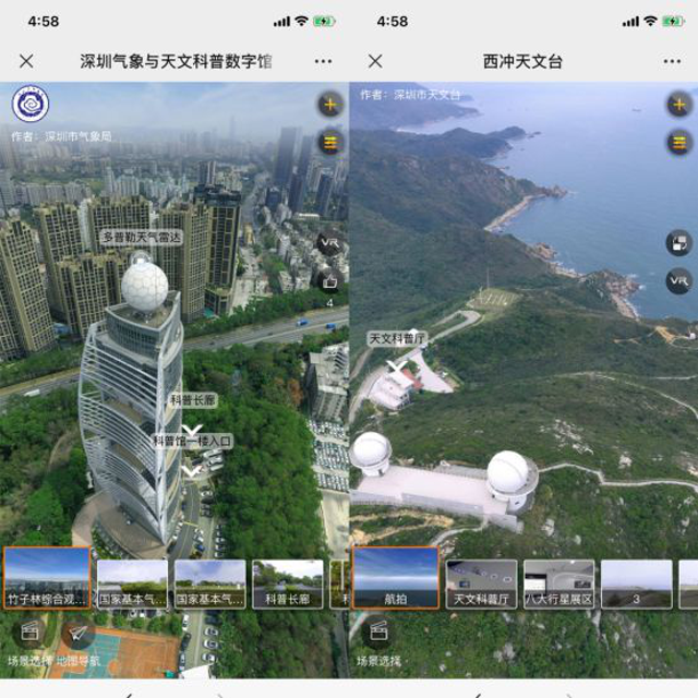 3月23日,深圳气象天文线上科普基地正式上线。这是深圳市气象局在疫情防控背景下推出的气象开放日活动新模式,充分利用气象科普优质资源,加强气象科普品牌展示与推广,探索智慧科普,为市民解锁服务式气象天文领域的全新视角而打造的。气象展厅和天文展厅实现了线上实景导览、弹幕互动、自媒体互动,从科普教育、VR实景等全面铺开线上服务模式。市民可以足不出户,便能解锁720°全景VR漫游视角,配合气象科普语音讲解功能,全方位、零距离、实景参观深圳气象科普展馆、阅读资源,观看讲座,感受一场真正的气象科普“云游”。